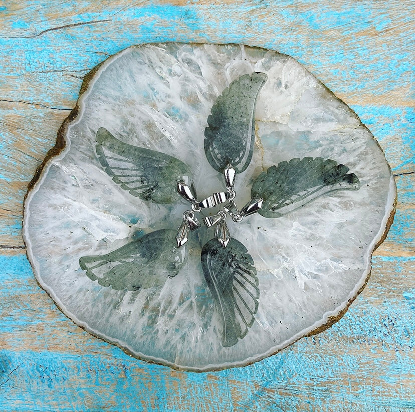Dieser in Indien handgeschliffene Engelsflügelanhänger fungiert als Schutzengel und hüllt Ihre Energie in einen kraftvollen Schild aus spirituellem Licht.
