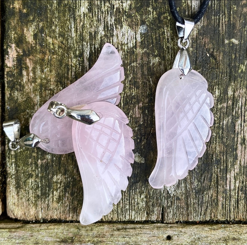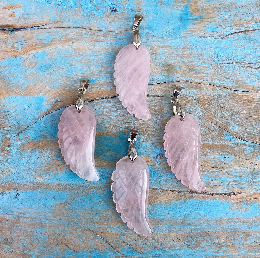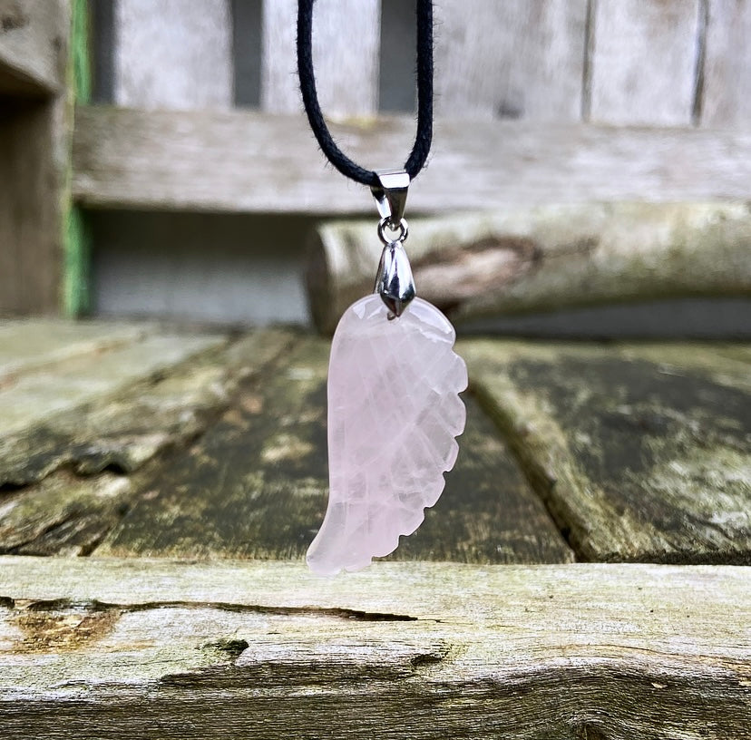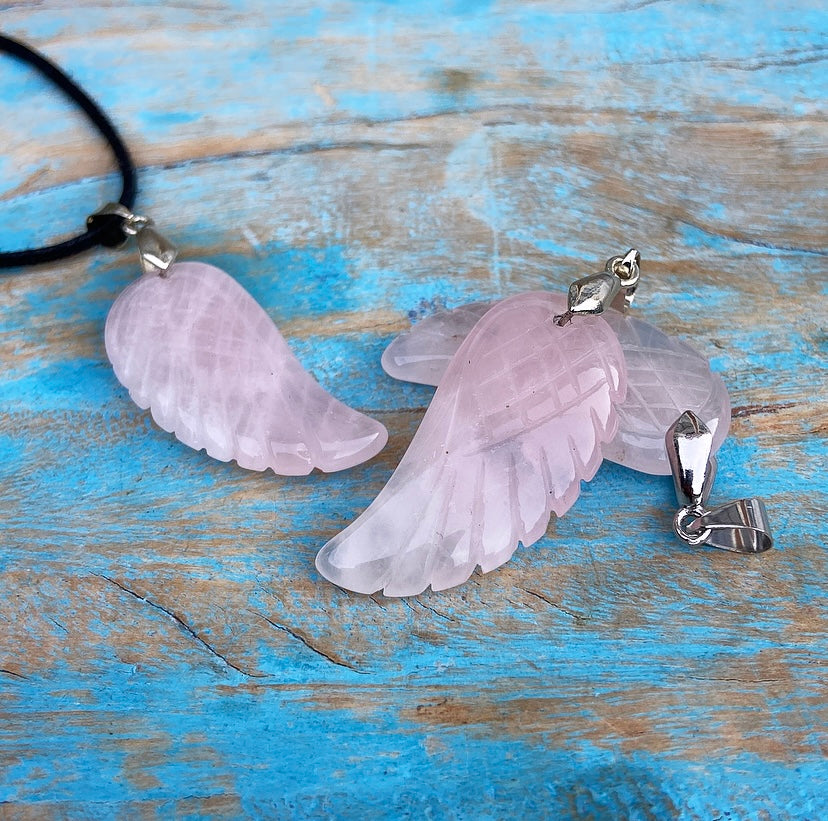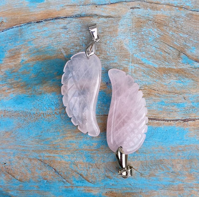 Engelsflügel-Anhänger Rosenquarz „Das Wunder der Liebe“
