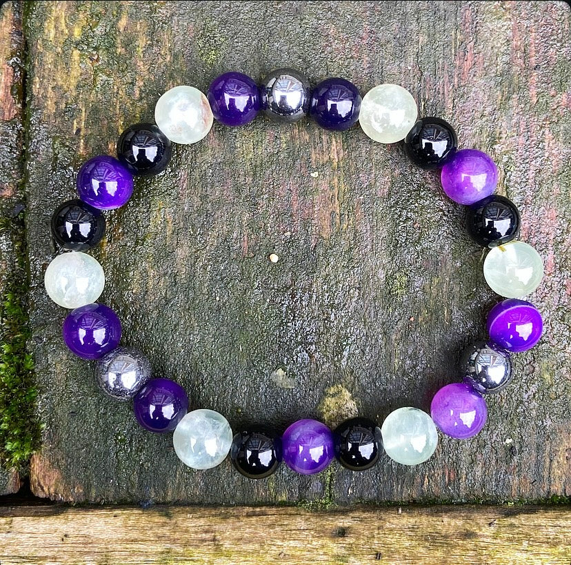 - Ritual: Legen Sie das Armband unter Ihr Kopfkissen oder auf Ihren Nachttisch. Schließen Sie vor dem Einschlafen die Augen und stellen Sie sich ein sanftes violettes Leuchten vor, das Ihre Gedanken beruhigt und Sie in einen tiefen, friedlichen Schlaf trägt.