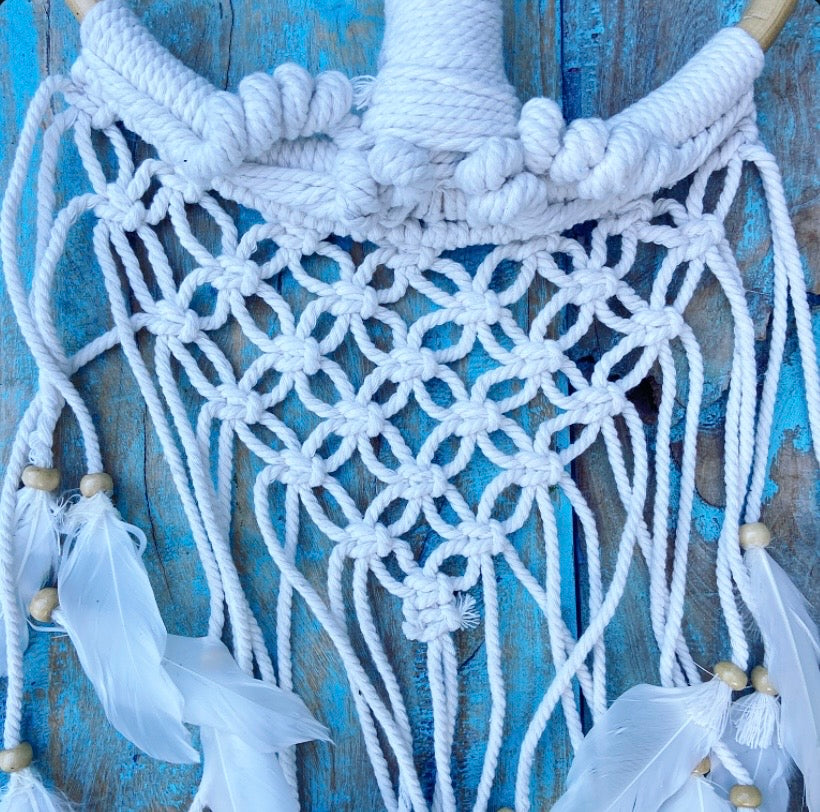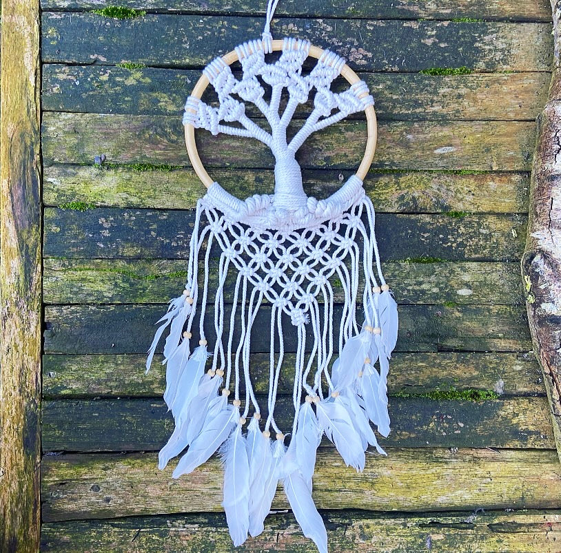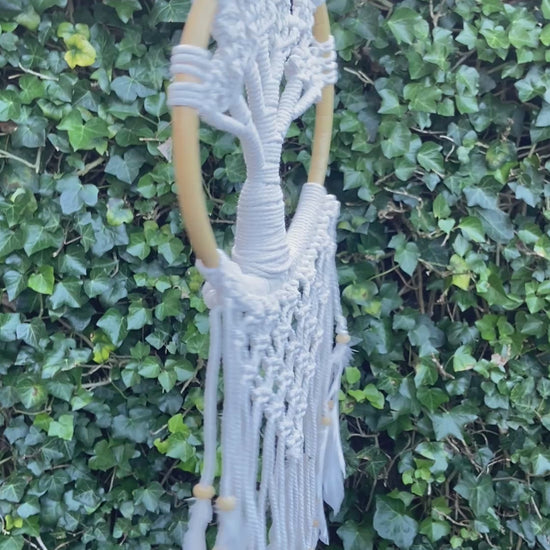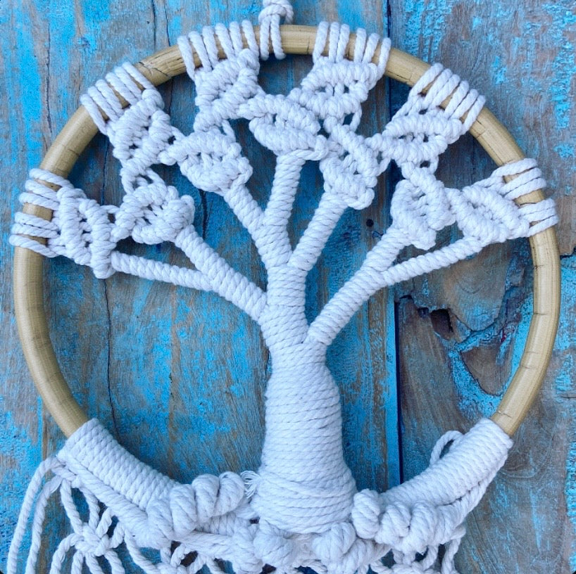De macramé wandhanger combineert de bescherming van de dromenvanger met de oerkracht van de levensboom. Hij staat prachtig aan de wand, boven je bed, of voor het raam. Ge-wel-dig leuk op de kinderkamer.