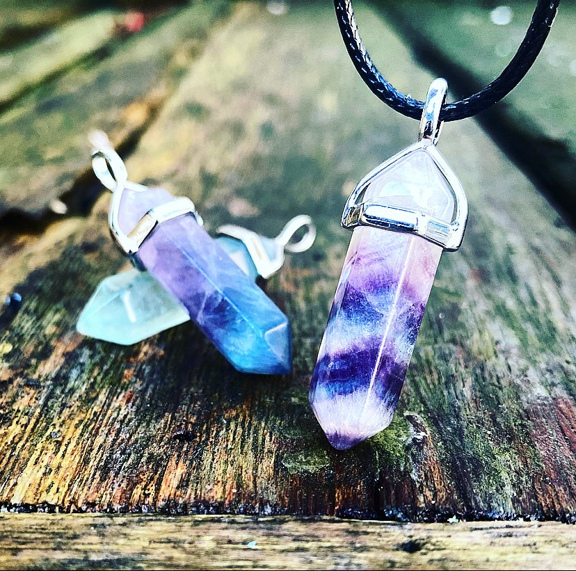 Diese Fluoritanhänger mit zwei spitzen Enden setzen Energie in Bewegung und haben eine besonders starke reinigende Wirkung.