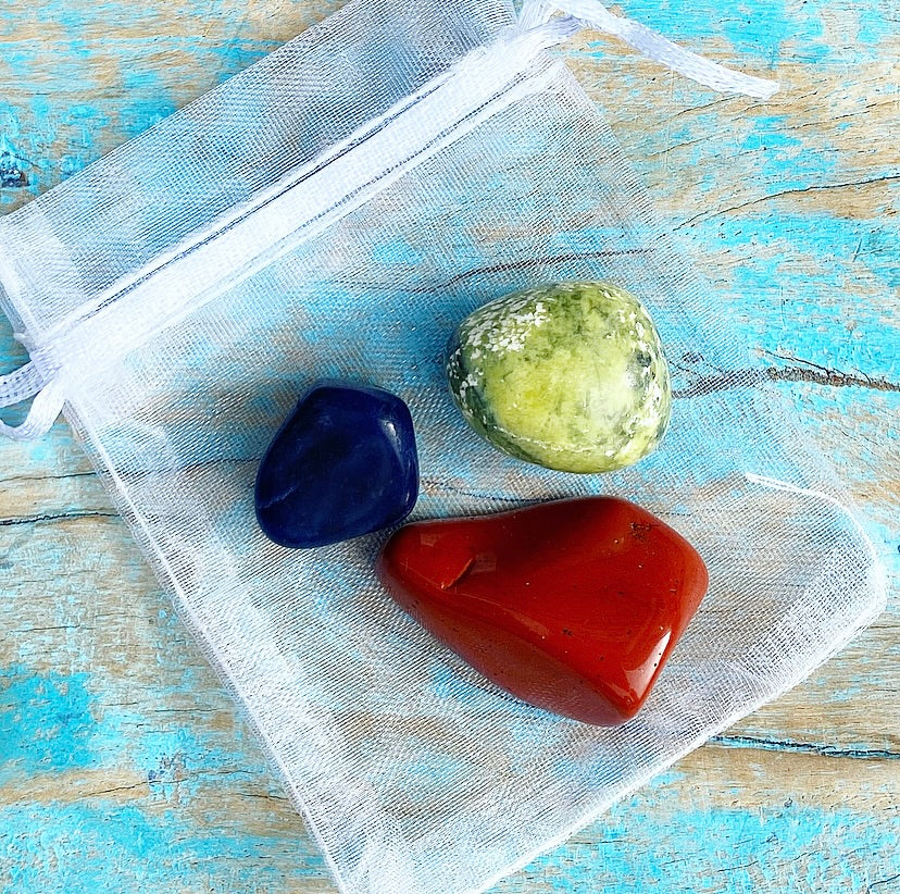 Wenn Sie möchten, können Sie die drei Steine abwechselnd auf die zugeordneten Chakren legen und die Energie genießen. Du kannst sie also auch einfach alle gleichzeitig tragen oder abwechselnd einen Stein während der dafür vorgesehenen Tageszeit tragen: