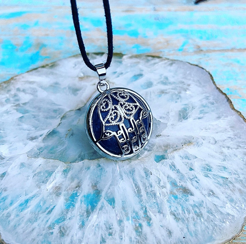 Diese Kyanit-Anhänger sind mit dem Hamsa-Symbol für Wohlstand, Erfolg und Schutz verziert.