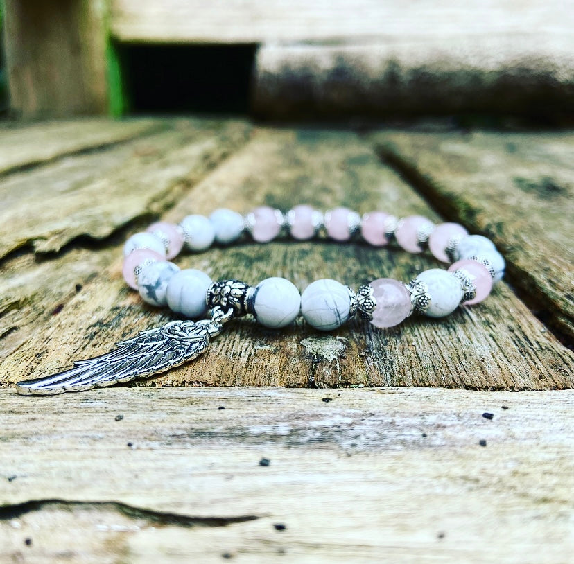 Glücksbringer-Armband Rosenquarz & Howlith "Contact your Guide"