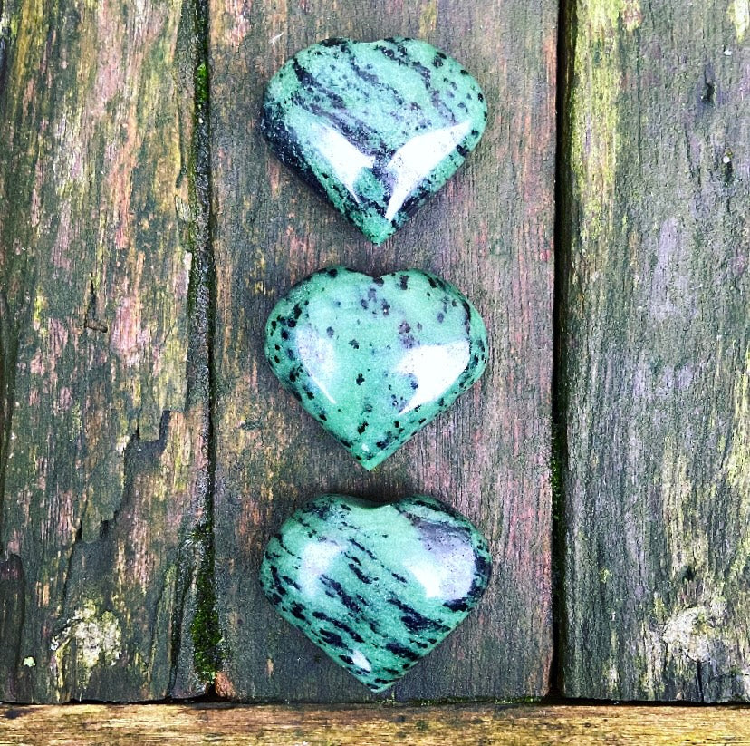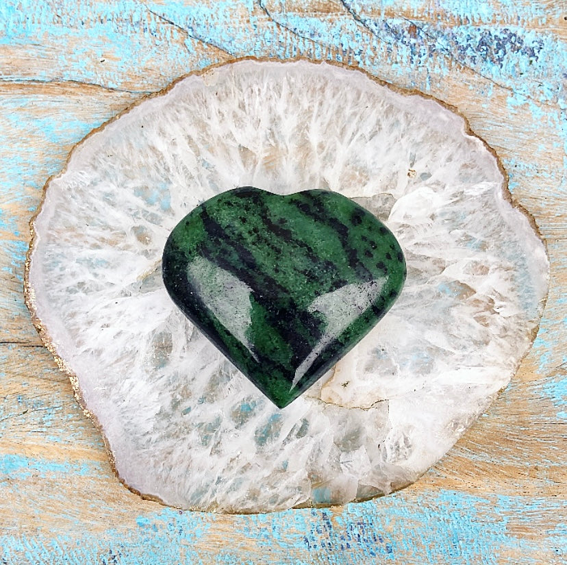 This gemstone heart resonates with elven light, etheric frequencies and the wisdom of nature beings. It is a perfect amulet for energetic work, healing, shamanic journeys or light body activations. Place the heart on your heart chakra or thymus before going to sleep, so that it can purify your aura and energy channels with soft, green light. The heart fills you with joy, protection and connection to the earth.