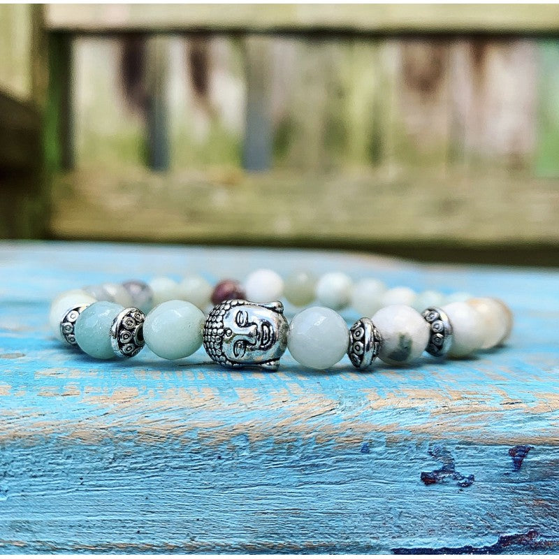 Onderdeel van: Amazoniet, Armbanden (8mm), Boeddha armbanden