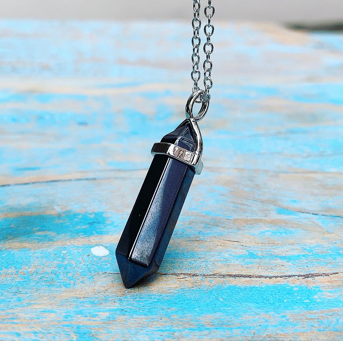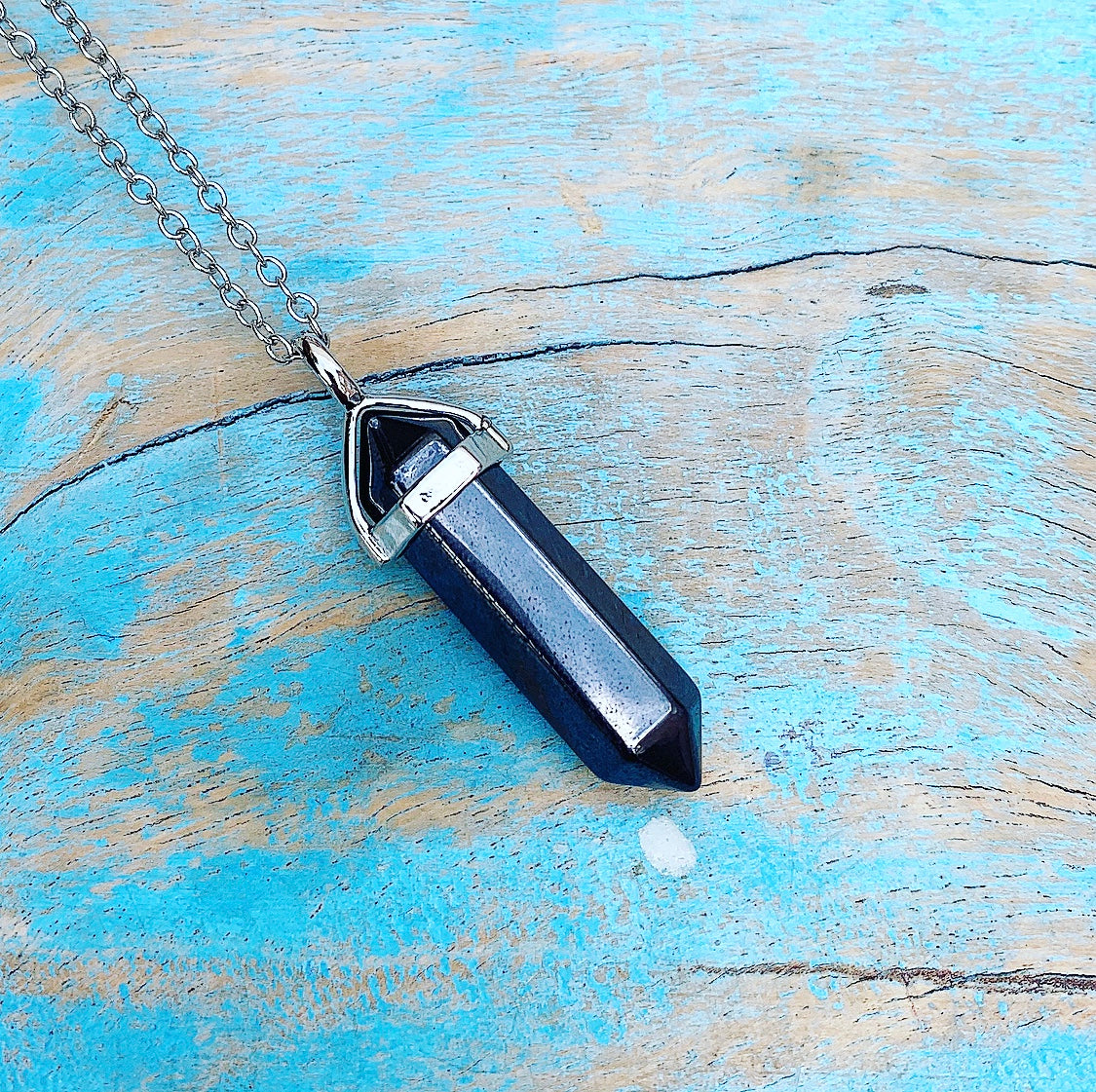 Deze hanger is een dubbeleinder: de dubbele punt bevordert en optimaliseert de innerlijke stroom van energie, en de mate waarin je energie opneemt en afvoert. Hematiet stimuleert de bloedsomloop, de circulatie van energie in het subtiele lichaam en door de chakra's, werkt bloedzuiverend en temperatuur-regulerend.