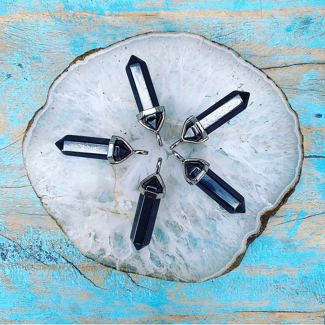Voel je je overweldigd, overspoeld of overprikkeld, pak de hematiet dubbeplpunt hanger dan even tussen duim en wijsvinger van je niet-dominante hand (de hand waarmee je niet schrijft). Haal drie keer langzaam en diep adem, tel tot tien en stel je voor hoe alles in je lichaam, geest en aura wat niet nodig is of wat schadelijk is voor je energieniveau wegvloeit, terug de aarde in. Je kunt je voorstellen dat er een afvoerputje voor je op de grond is, bestemd voor de overtollige prikkels en voor alle negativiteit die je per ongeluk van anderen hebt overgenomen. Stel je voor hoe je lichaam en geest terwijl je de hematiet aanraakt, energie loslaten die moeiteloos in dit afvoerputje stroomt. Dit kun je zo vaak doen als je wilt en als nodig is. Deze korte aandachtsoefening en reinigende mini-visualisatie met hematiet kan je ontzettend helpen om energetisch in balans te blijven op dagen dat de snelheid van het leven en de wereld om je heen een uitdaging zijn voor je sensitieve aard.