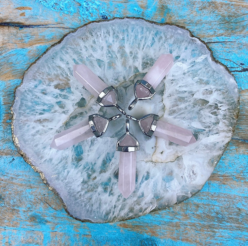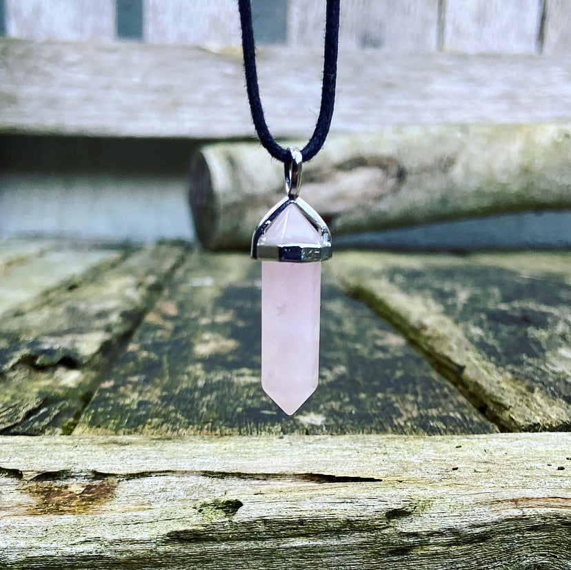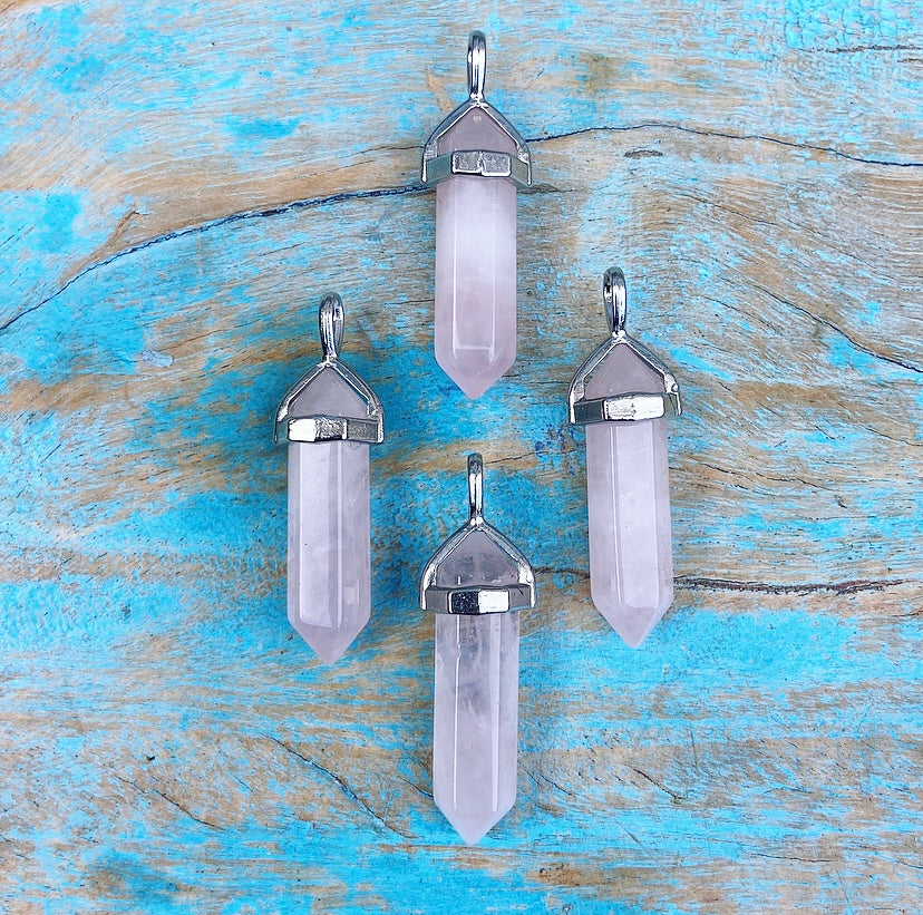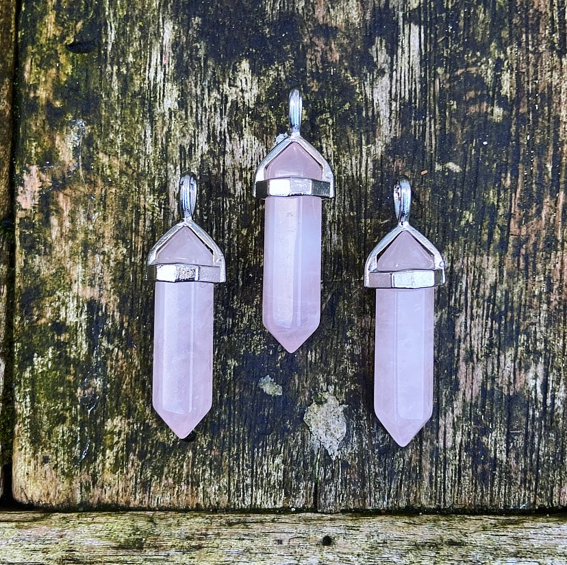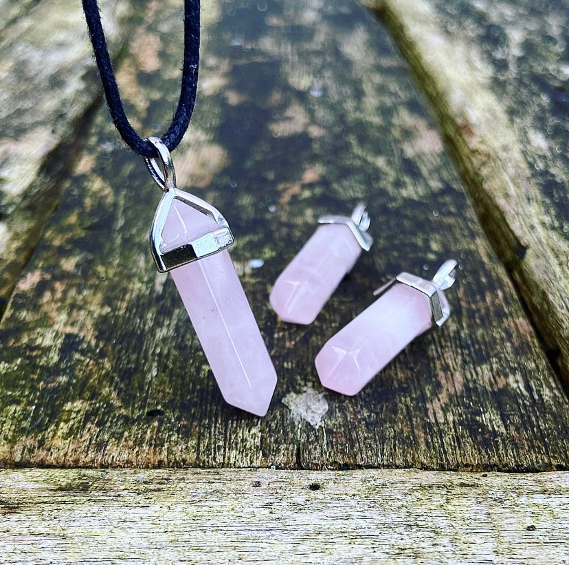 Onderdeel van: Dubbelpunt edelsteen hangers, Rozenkwarts