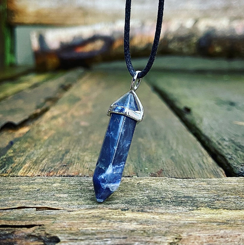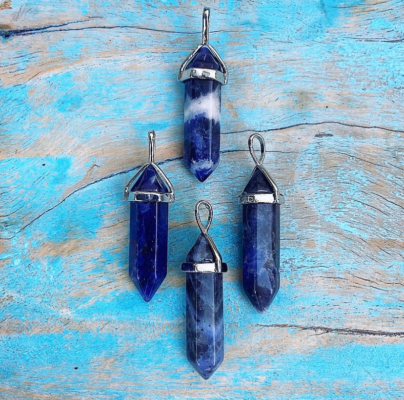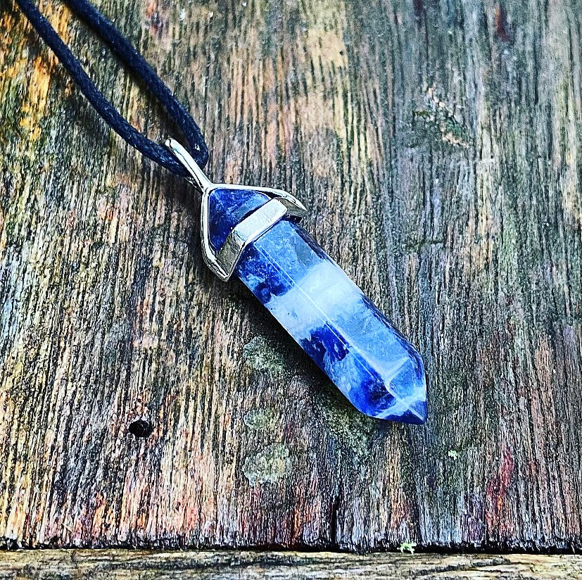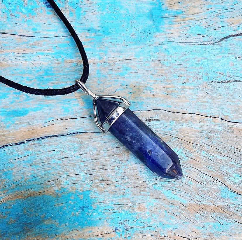 Deze mooie hanger gemaakt van sodaliet edelstenen is nog stoerder dan ie eruit ziet. De dubbelpunt (twee puntige uiteinden) staan voor beweging, groei en het optimaal doorstromen van energie. Draag de hanger als reminder dat je jezelf altijd toestemming geeft om lekker eigenwijs te zijn. Vertrouw op jezelf, wees jezelf en je zult enorme stappen zetten.