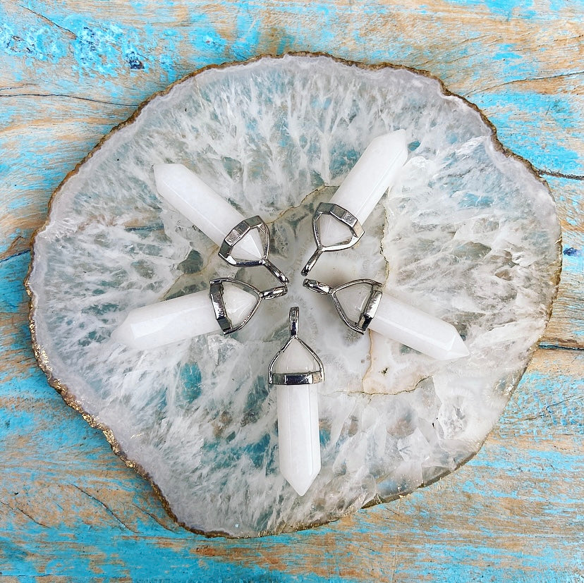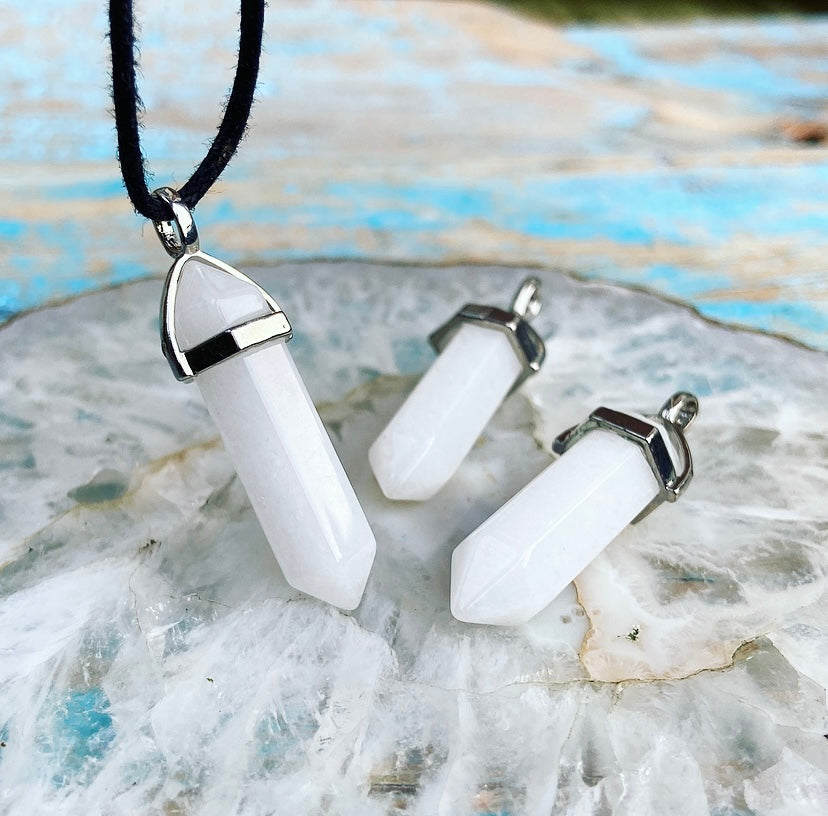Onderdeel van: Dubbelpunt edelsteen hangers, Witte jade