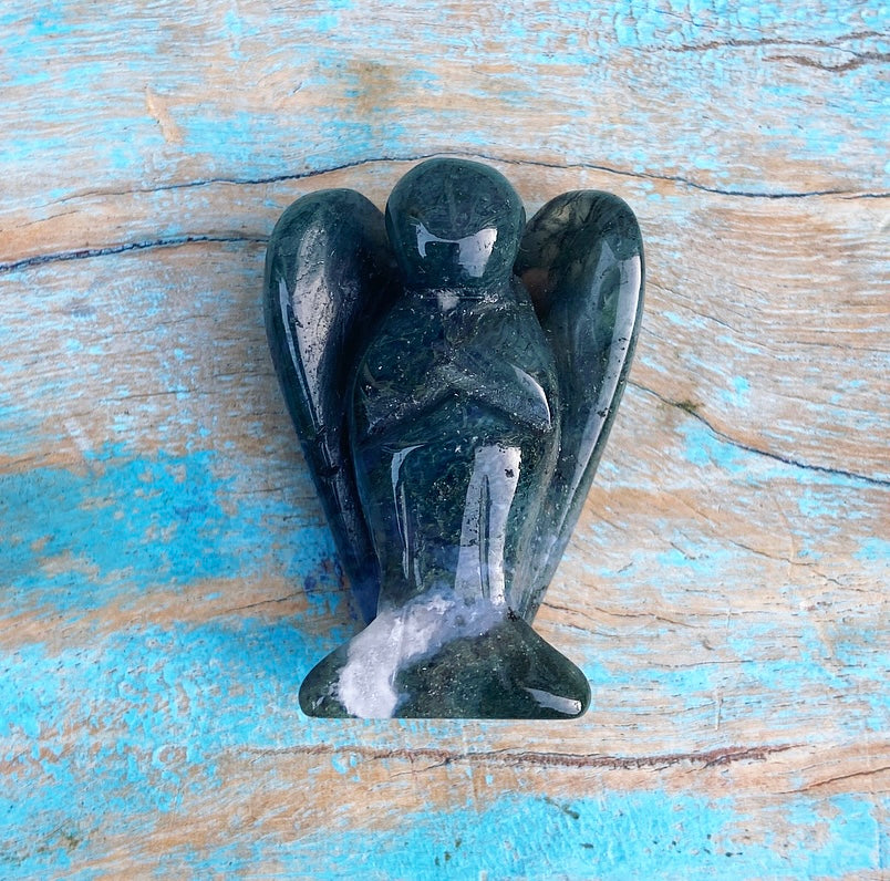 Deze mooie mosagaat engel is nieuw in ons assortiment. De engeltjes zijn ongeveer 4 cm hoog.