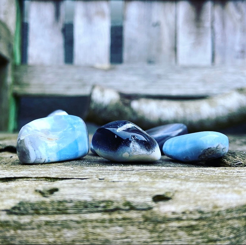 De Opaal is getrommeld (machinaal gladder gemaakt). Desondanks kan de natuurlijke ruigheid van deze edelsteen voelbaar en zichtbaar zijn. Onregelmatigheden, groefjes en oneffenheden zijn géén beschadigingen, maar kenmerken van de authenticiteit van de steen. Ze tonen aan hoe de steen is gegroeid, diep in de schoot van Moeder Aarde. De stenen zijn allemaal ongeveer 2-3 cm groot. Ze liggen door hun vorm prettig in de hand. Omdat ze allemaal uniek zijn en in een kwarts moedergesteente zijn ontstaan, bevat de ene opaal steen meer wit of juist meer blauw dan de andere steen. De werking is hetzelfde.