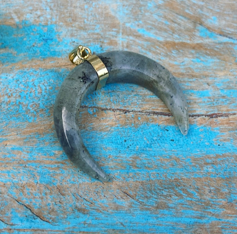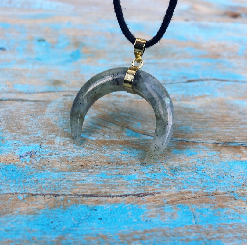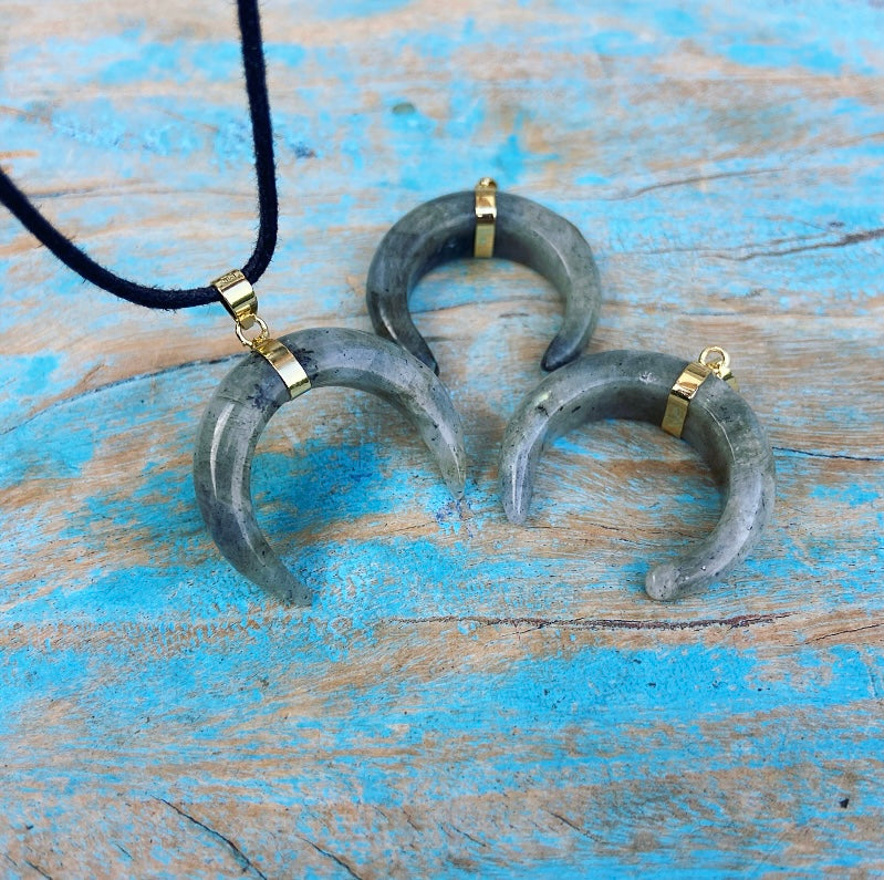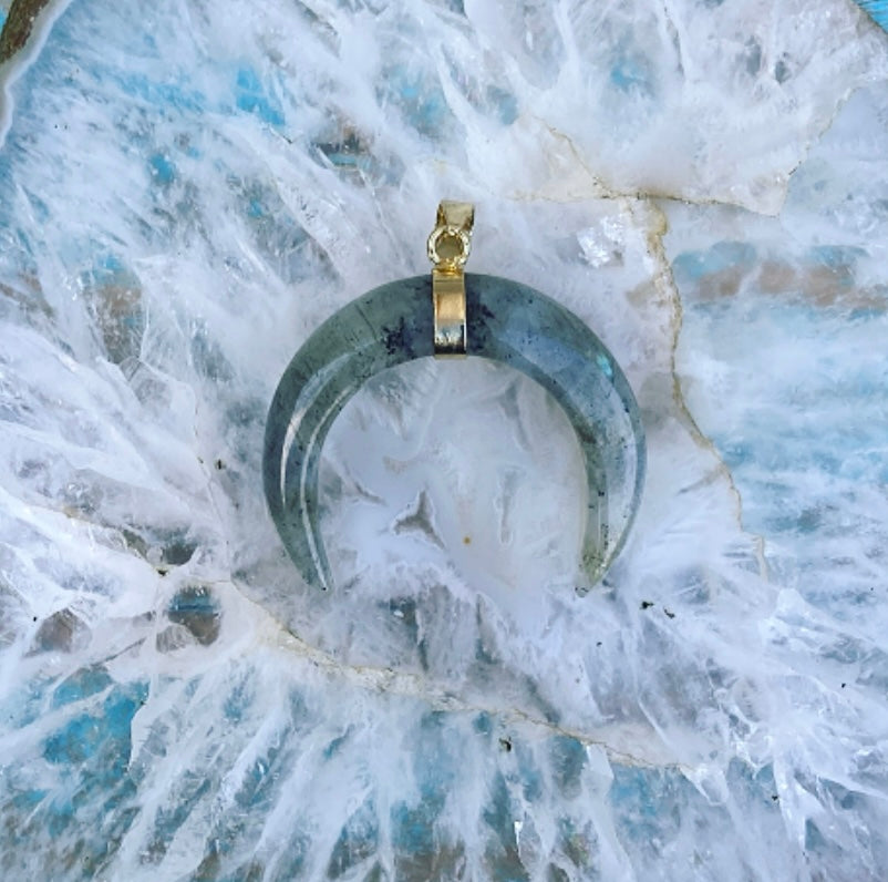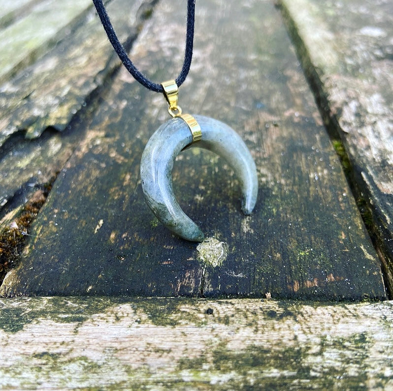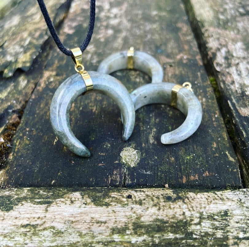 De labradoriet hanger “Mijn Cirkel” is ontworpen als een bijna gesloten boog: een cirkel met een opening. De open ruimte staat symbool voor jouw bewuste keuze: wat mag dichtbij komen, en wat blijft buiten je persoonlijke ruimte?