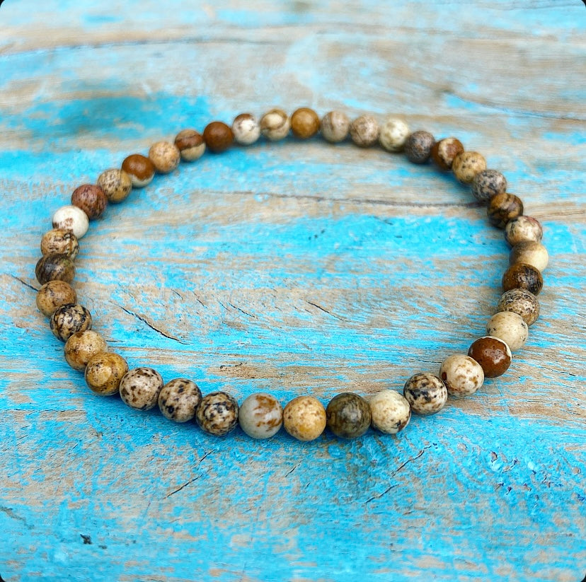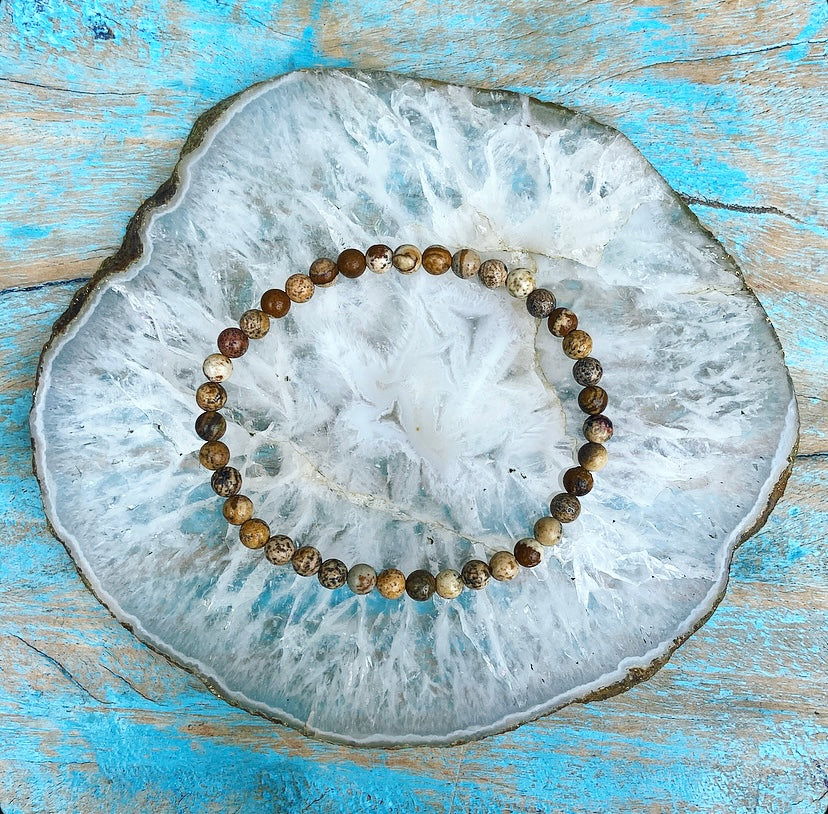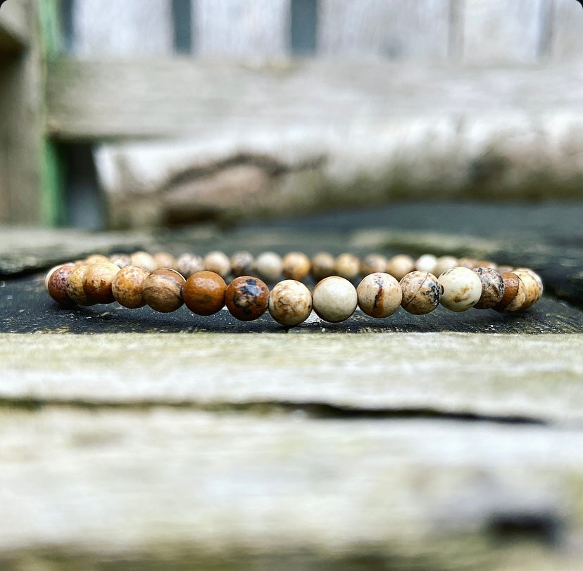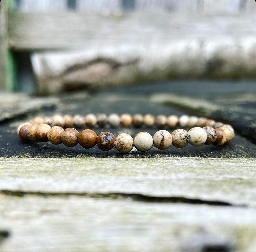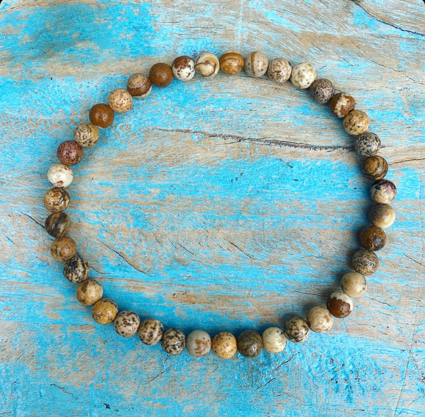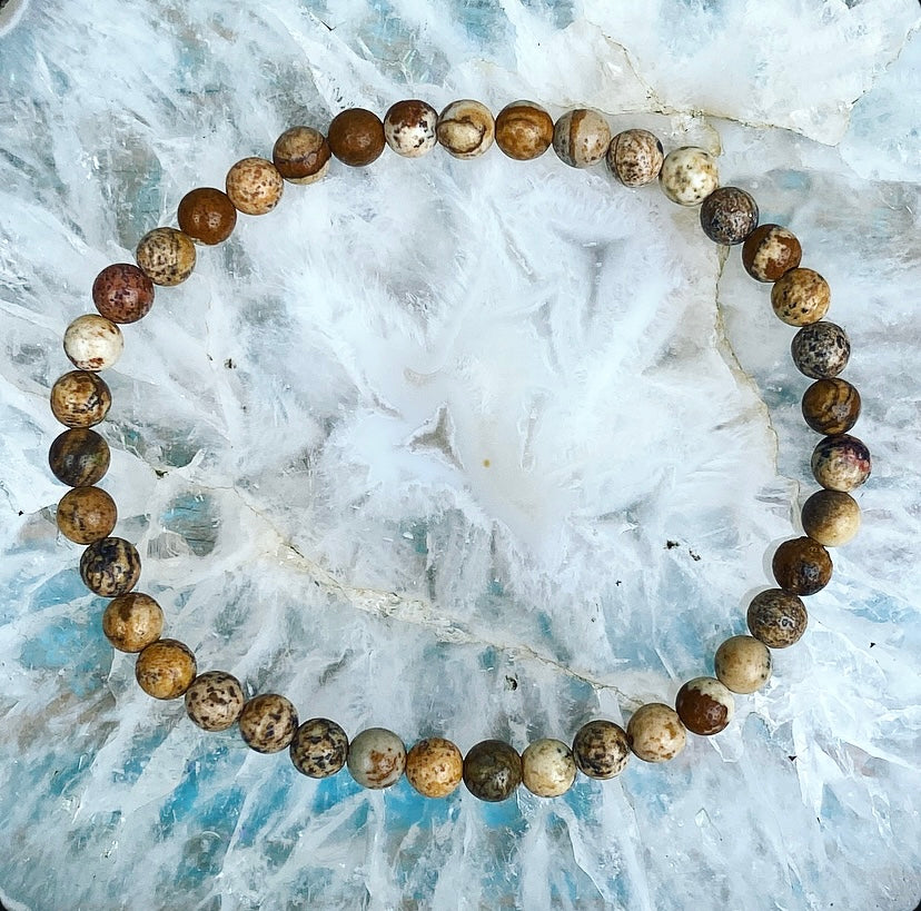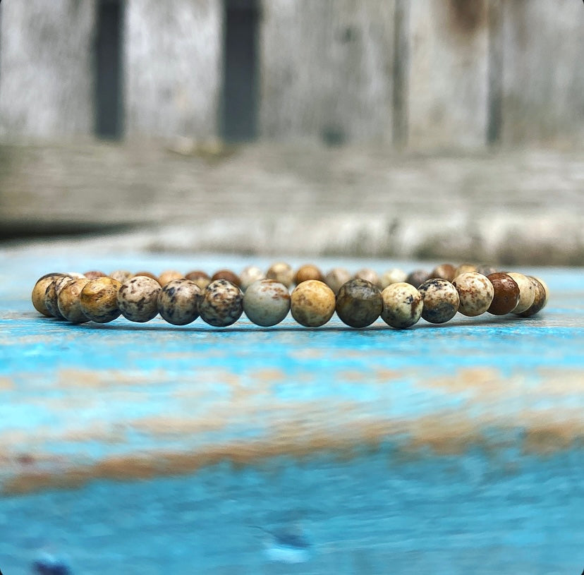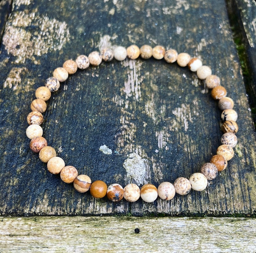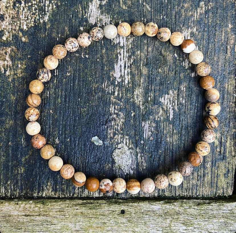 Deze mooie landschapsjaspis armbandjes zijn nieuw in ons assortiment. Ze zijn 18-19 cm in omtrek en geregen aan elastiek.