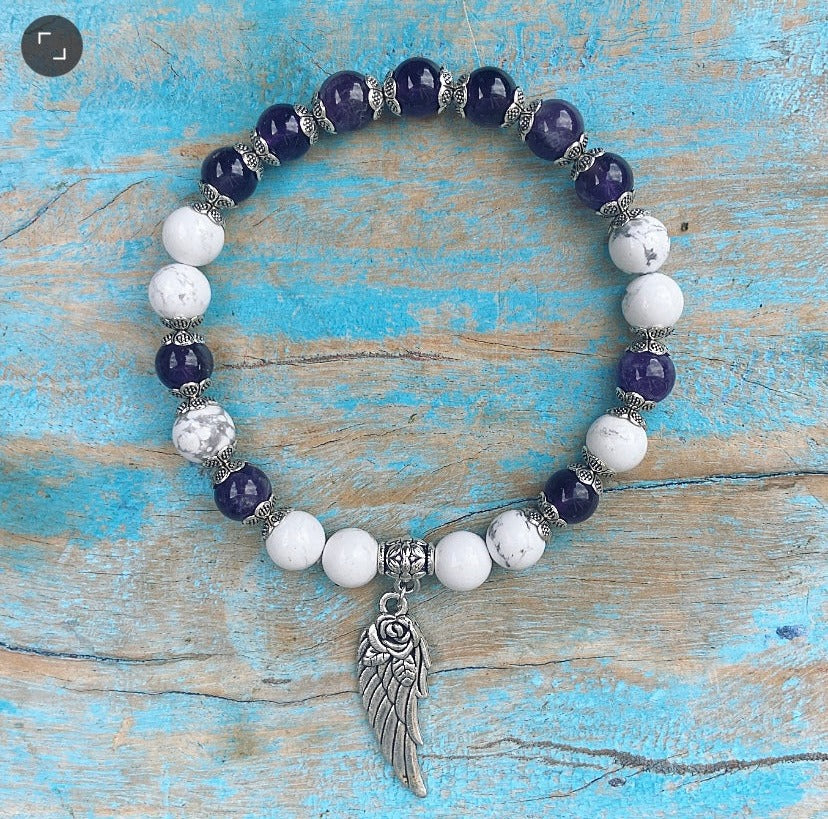 Deze edelsteen armband combineert de positieve werking van amethist en howliet om je in contact te brengen met de spirituele wijsheid van engelen.