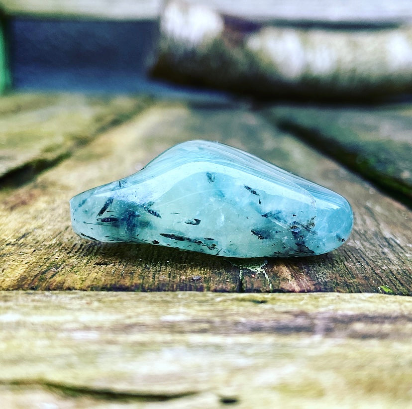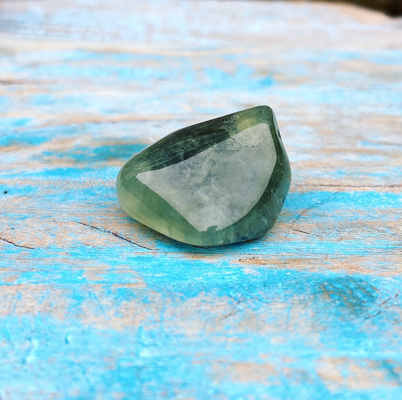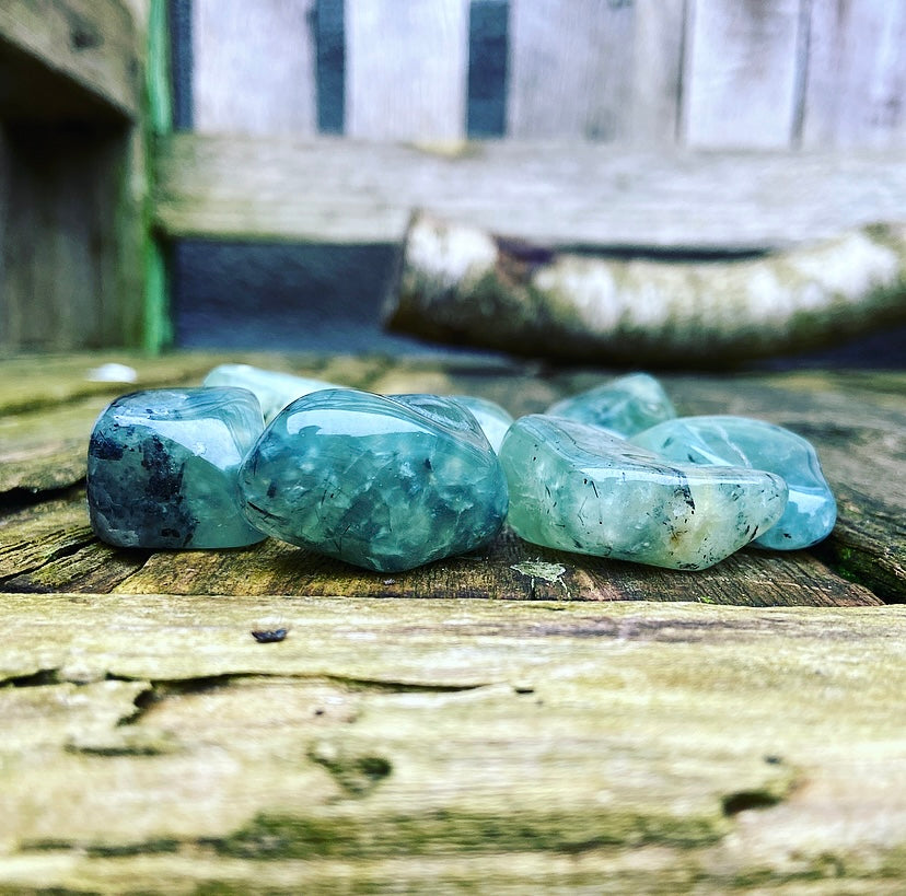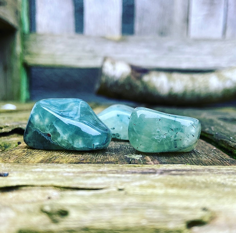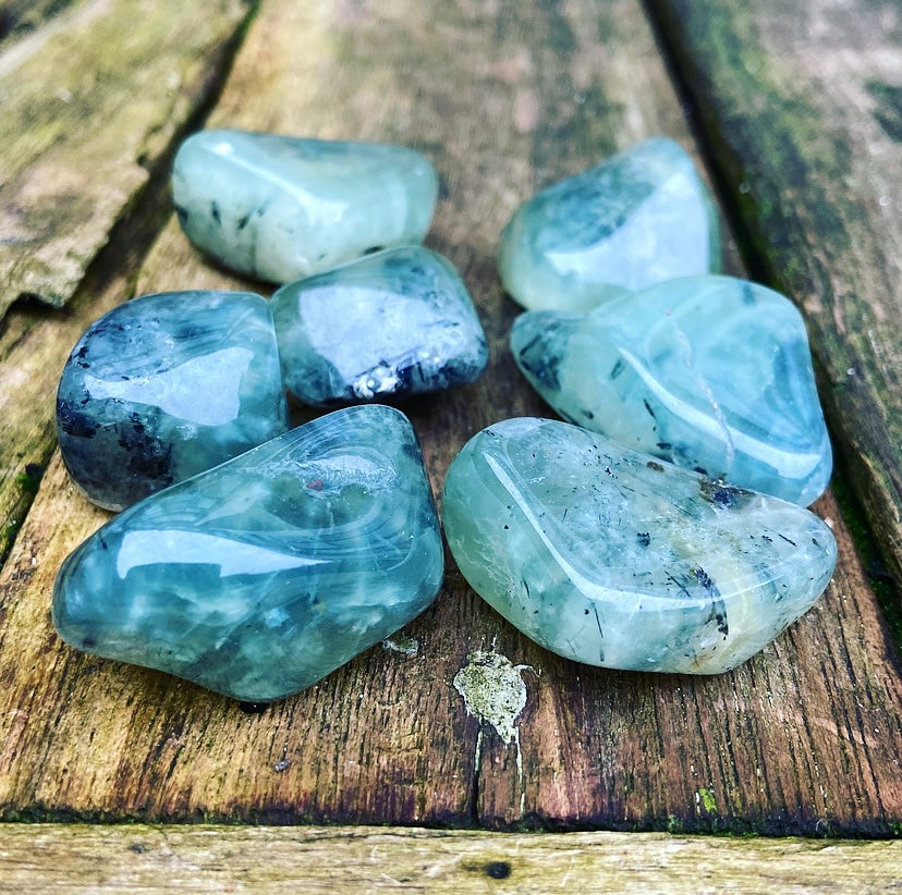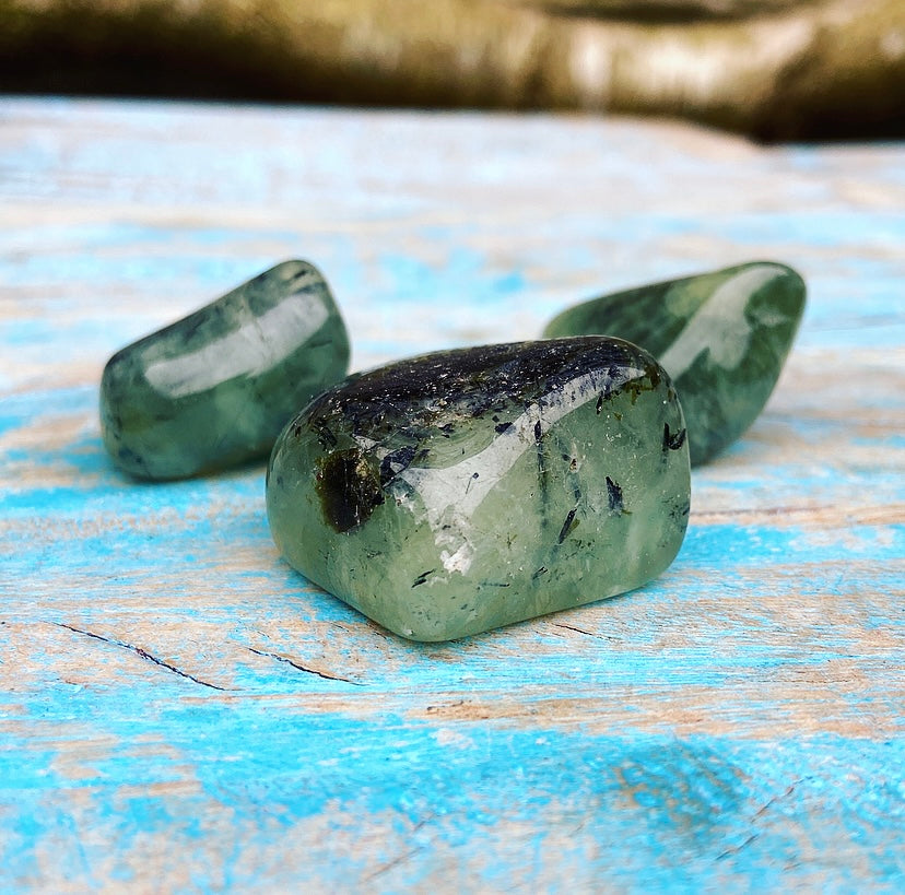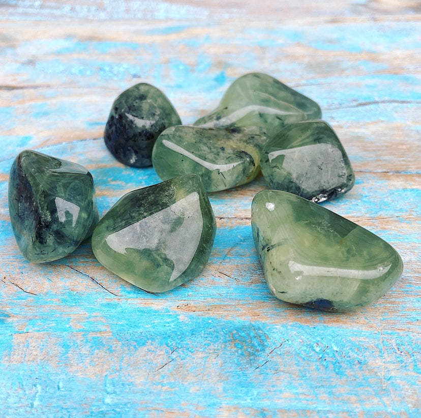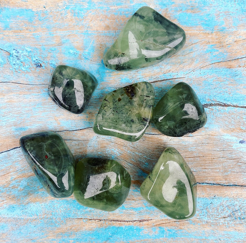 Let op: deze prehniet is getrommeld, en niet gepolijst. Dat betekent dat je bij iedere steen nog de van nature aanwezige breuklijnen en oneffenheden kunt zien en voelen! Dit maakt de stenen levend en authentiek. Ze zijn dus niet helemaal 100% glad!
